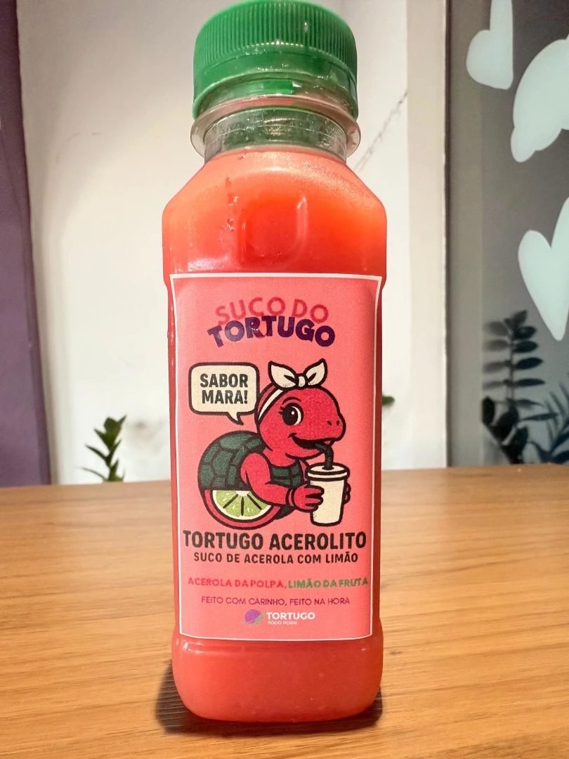 Suco de acerola (polpa) com limão (fruta) feito na hora, com um pouco de açucar (300ml) - caso tenha restrição de açucar, colocar na observação.